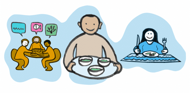We gaan op onderzoek met oceaangerelateerde en duurzame manieren van voedselbereiding. We doen dit door erover te vertellen, het te laten proeven en het zelf te bereiden.